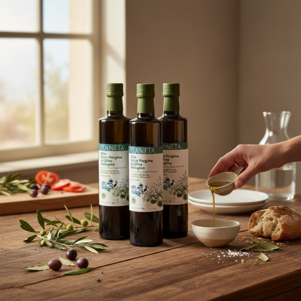 Bio Olivenöl Olio Extra Vergine Sicilia IGP 2025 vom Weingut Planeta hier im preisgünstigen 3er Sparpaket. Weitere Informationen zum Öl siehe Produktbeschreibung hier ➡️